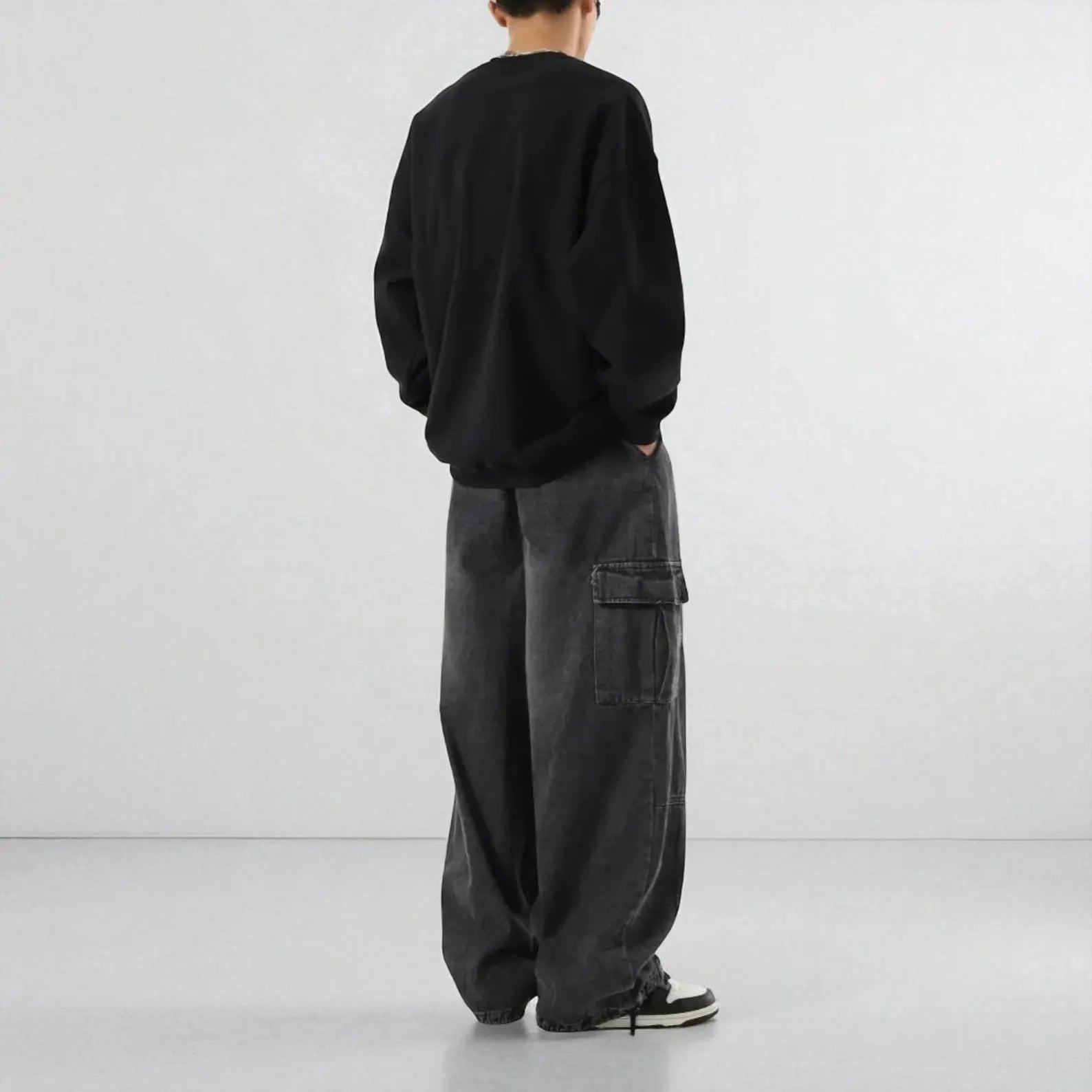 Baggy Cargo Denim Jeans | Oversized Wide Leg Streetwear Pants | Y2K Grunge Hip-Hop Trousers | Unisex Skater Style