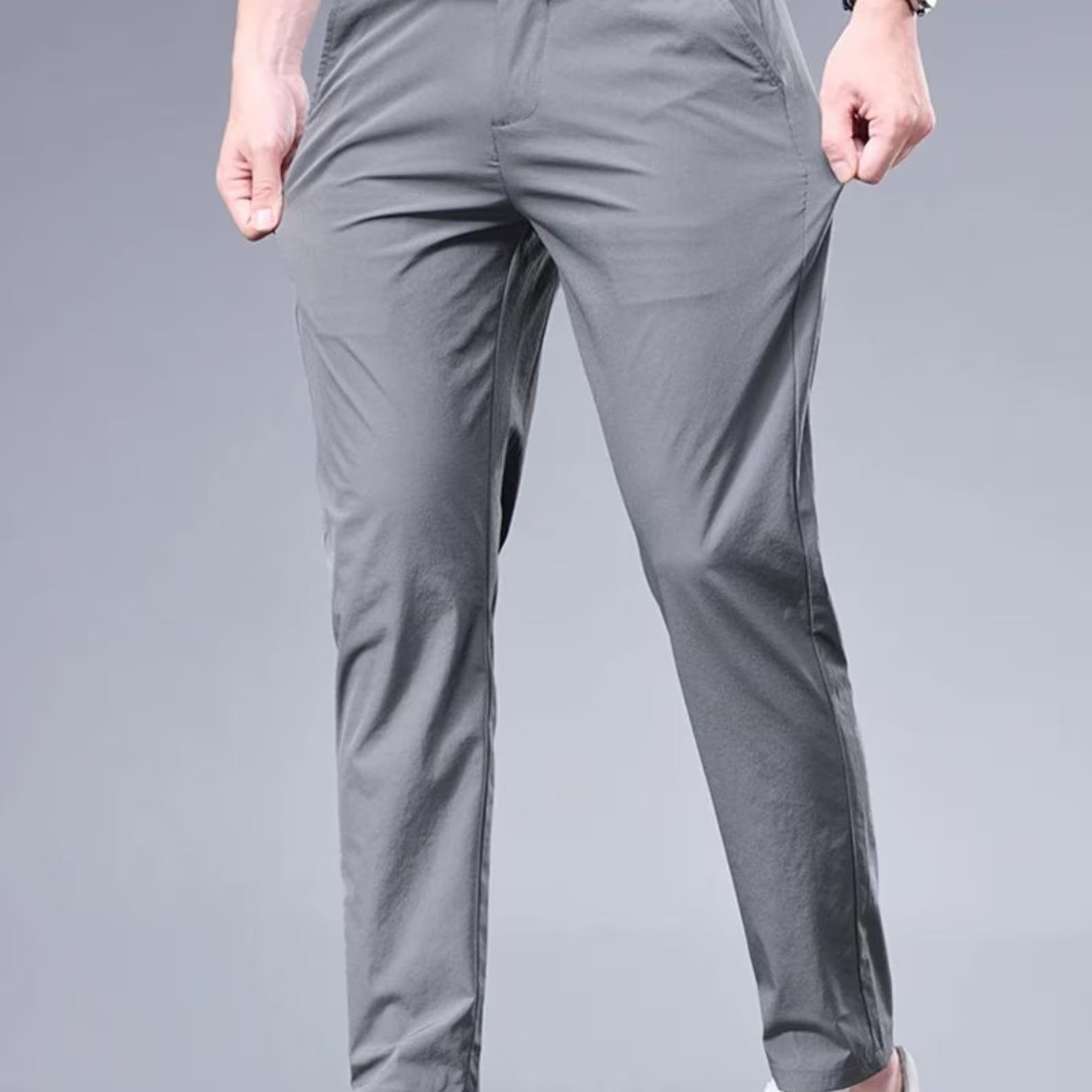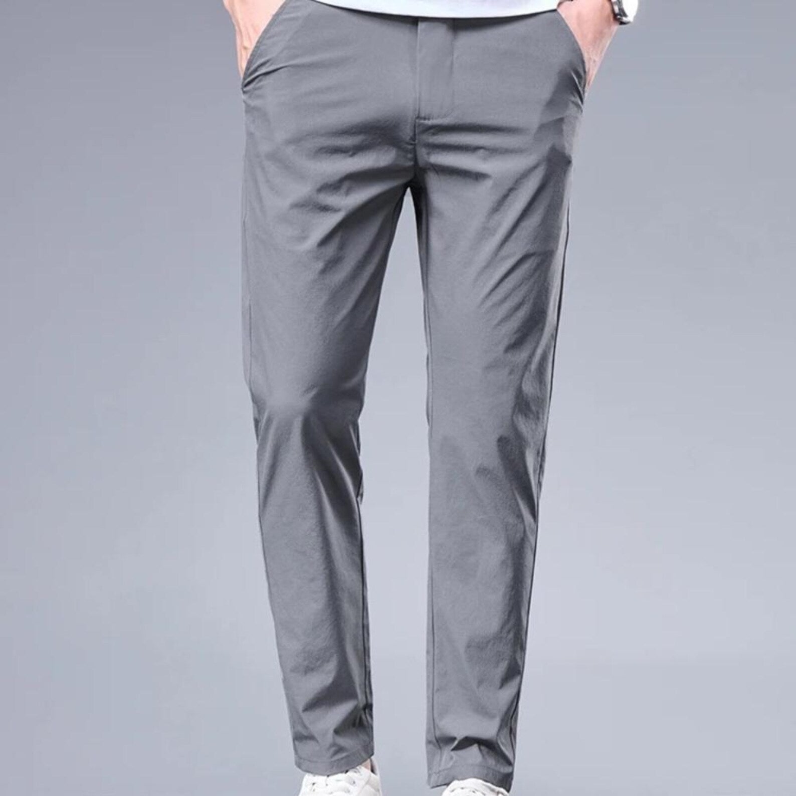 Men's Summer Ice Silk Stretchable Business Pants – Breathable Straight-Leg Trousers with Elastic Waist, Casual Slim Fit